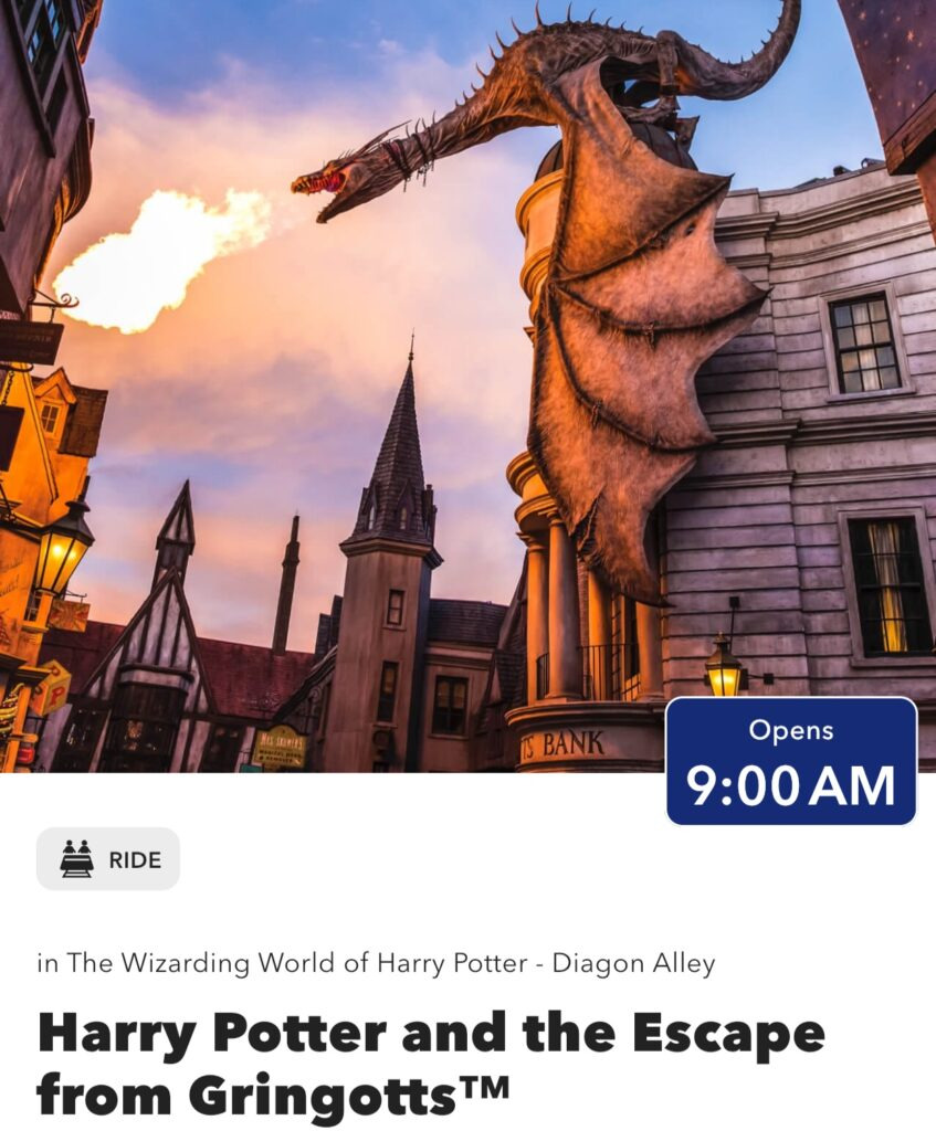 그린고트 라이드는 이 파크 최고의 하이라이트 라고 할 수 있는 라이드다. 반드시 타야하는 라이드라고도 할 수 있다. 대기시간은 살벌한 편인데, 해리포터 라이드의 최대 장점은 바로 대기시간이 크게 지루하지 않는다는 점이다. 영화에서나 본 것들이 실제로 구현되어 있어서 기다리면서 주위를 구경하다보면 장시간 대기시간을 좀 덜 지루하게 보낼 수 있다.