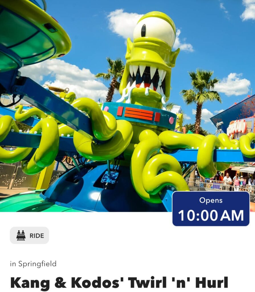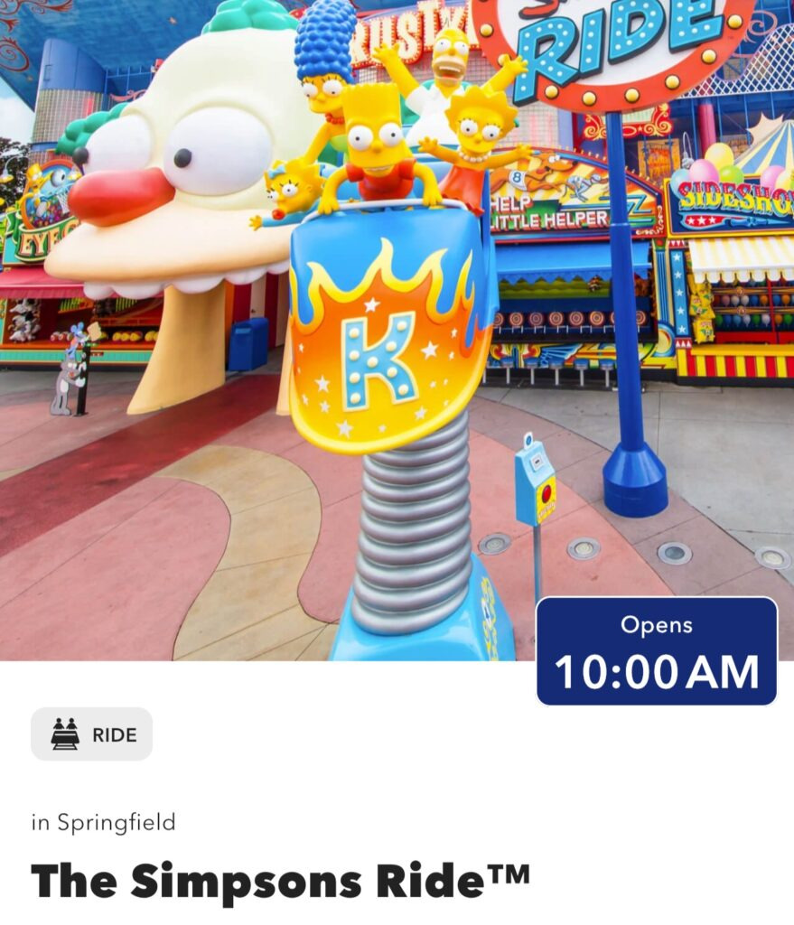 맨인블랙을 나와서 계속 걷다보면 심슨 라이드가 보인다. 아무래도 이쪽 지역들은 아이들이랑 오는 가족들 친화적인 분위기의 라이드가 많아서 이 심슨 라이드도 엄청 무섭거나 그렇지 않다.