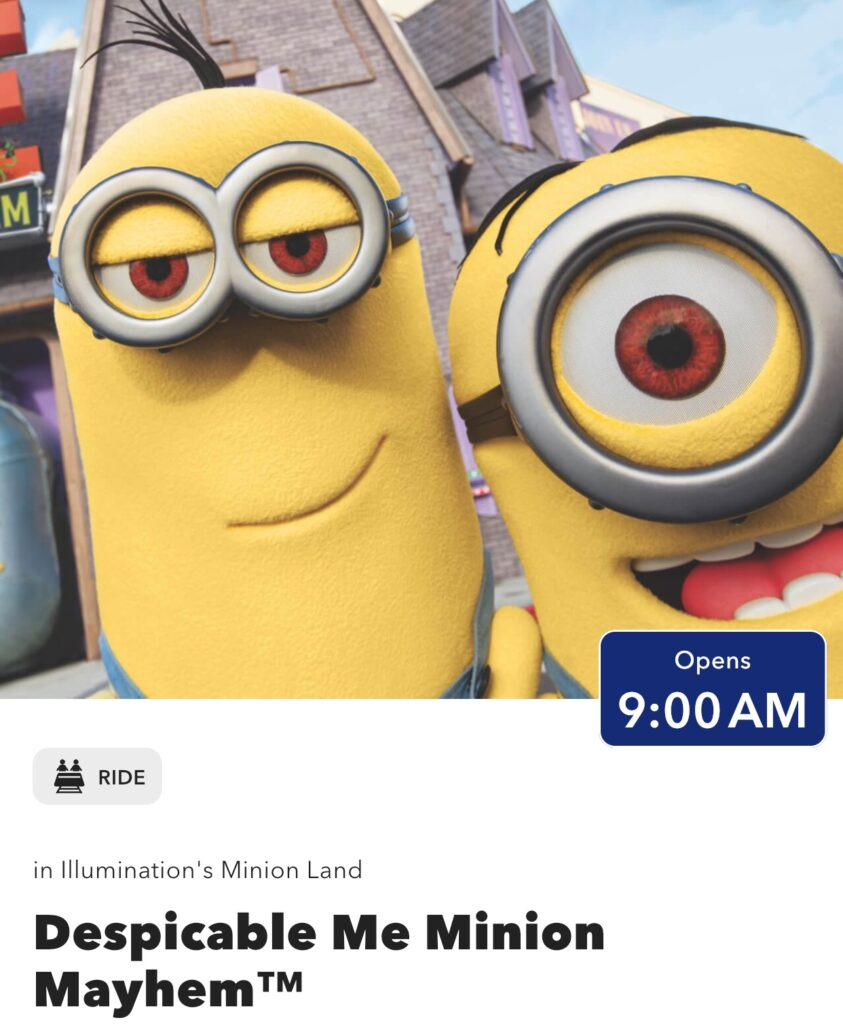 입구에서 입장하면 제일 먼저 보이는 라이드다. 미니언즈 테마의 놀이기구다. 줄 서있는 사람들의 대부분은 어린아이가 있는 가족 고객들이다. 웨이팅이 길지 않을 때 우리는 10분 이내로 줄을 서서 탔었다.