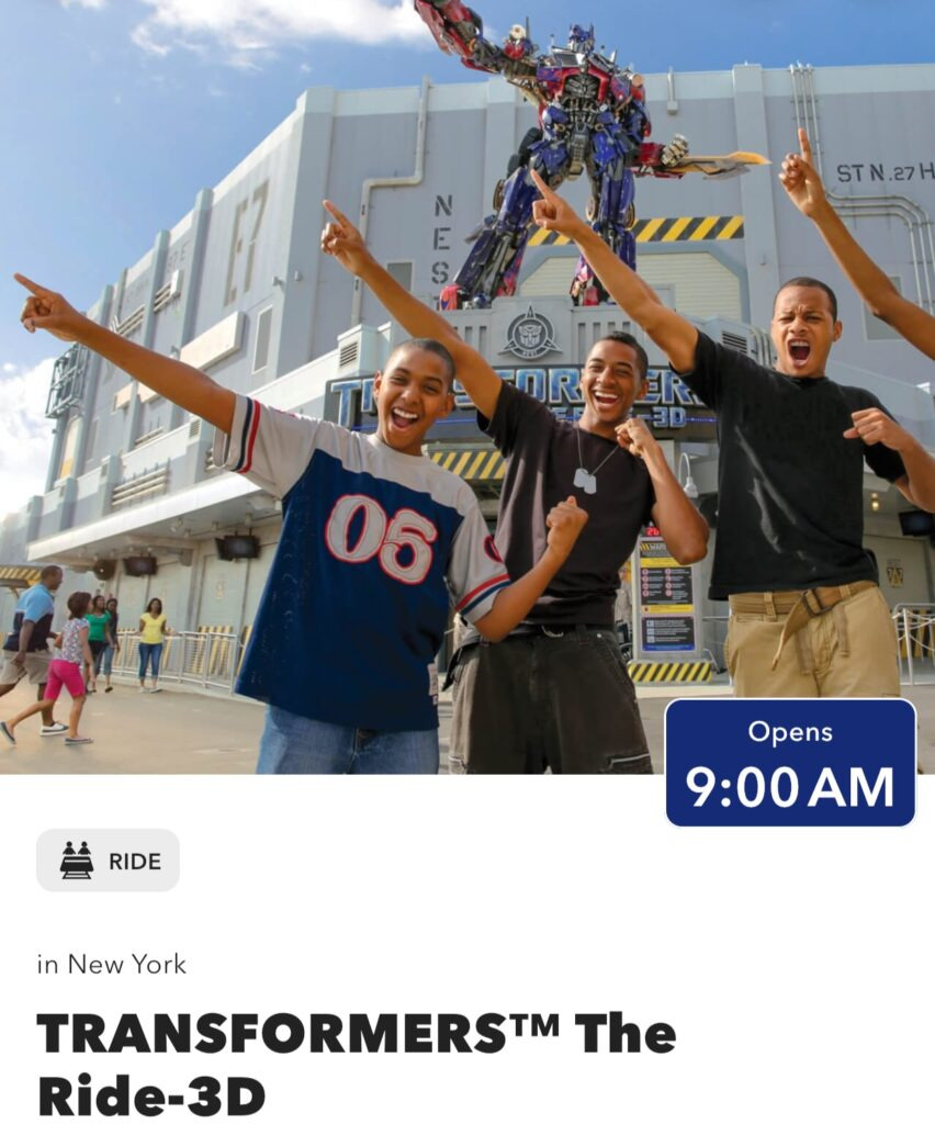 미니언즈를 지나고 왼쪽으로 가면 롤러코스터가 있고 오른쪽으로 가면 트랜스포머 라이드가 있다. 워낙 트랜스포머 영화의 컨셉으로 만든 3d 안경을 착용하는 라이드다.