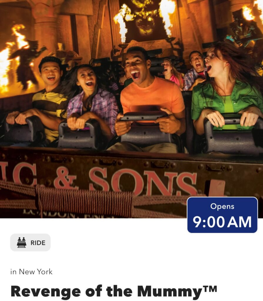 입장 - 해리포터로 직행 - 그린고트 라이드 - 미이라 라이드 - 'Hollywood Rip Ride Rockit' 롤러코스터 - 사진찍으며 놀다가 시간 짧은 라이드 우선으로 타보기