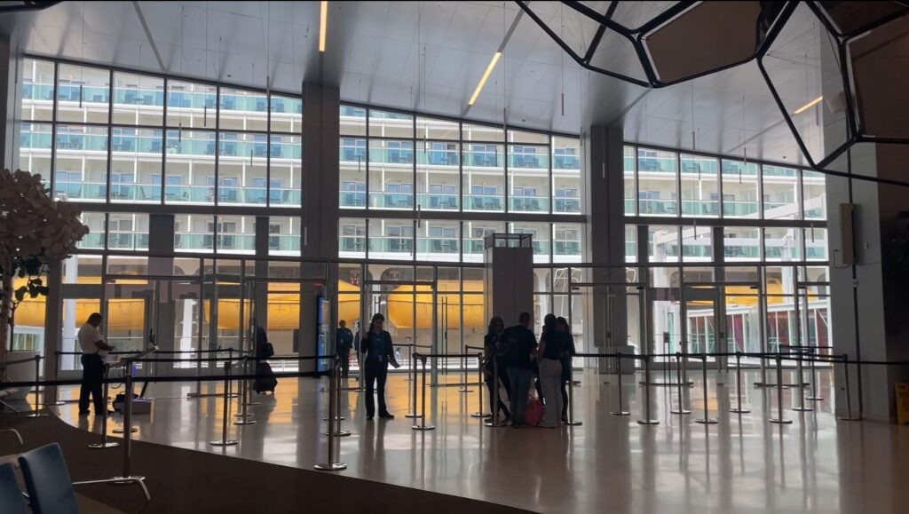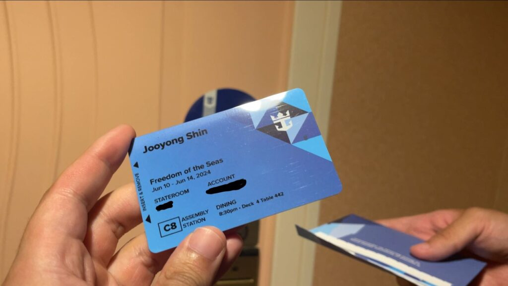 체크인을 할 때는 여권을 보여줘야한다. 미국 밖 (바하마) 을 다녀오기 때문이다. 유학생 비자를 갖고있는 한쥐는 F1 종이를, 영주권자인 나는 영주권 카드를 여권과 함께 보여줬다. 여권에 도장을 찍어주지는 않았고 그냥 슥 보고 말았다.