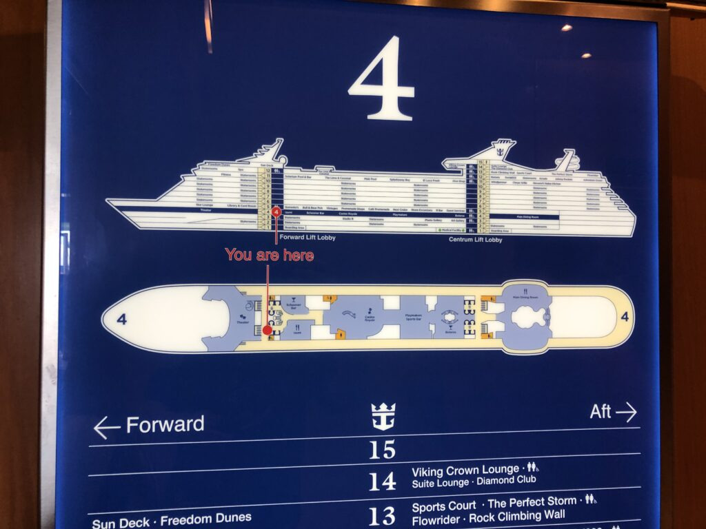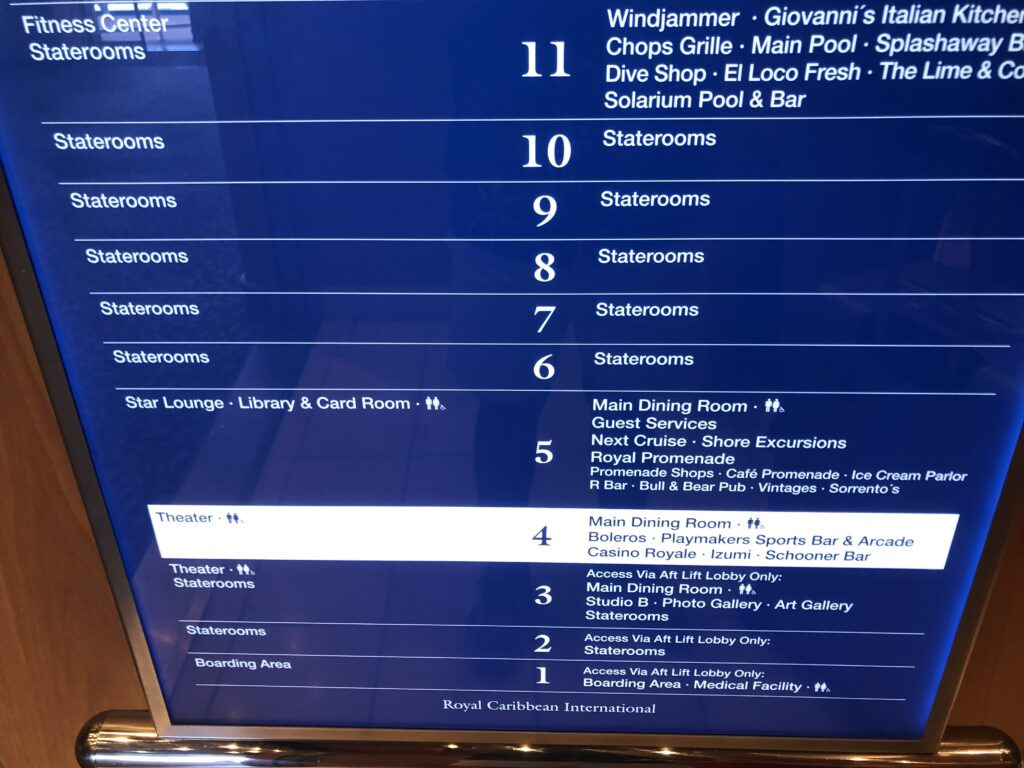 대략적인 배 구조를 소개해보겠다. 승선할 때는 4층으로 들어가게 된다. 그러나 대부분의 정박시 밖으로 나가게 될 때는 1층을 통해서 이동한다.