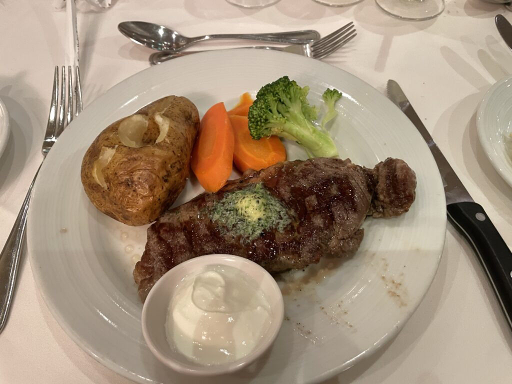 뷔페에서 간단하게 저녁을 먹은 후 다시 방에서 좀 쉬다가 8시 반에 메인 다이닝에 갔다.