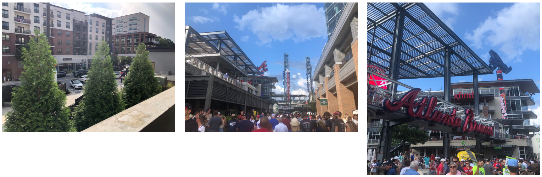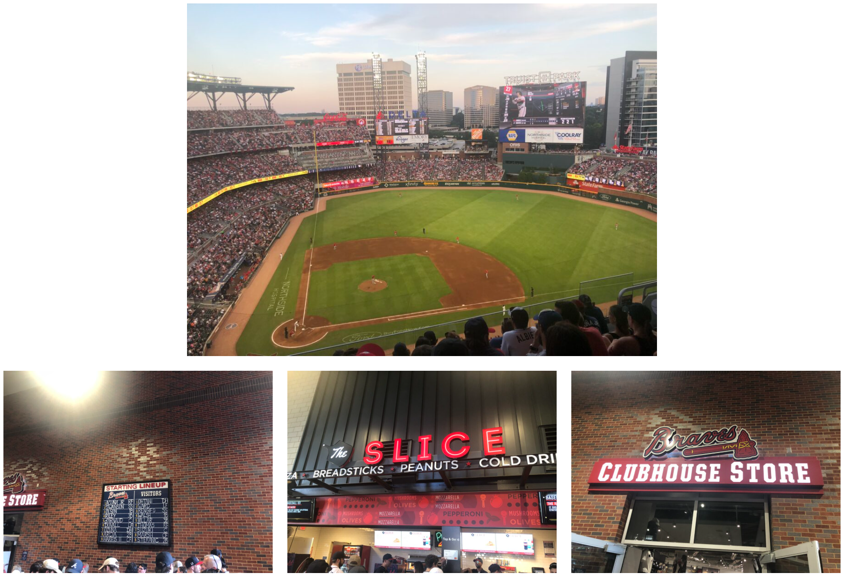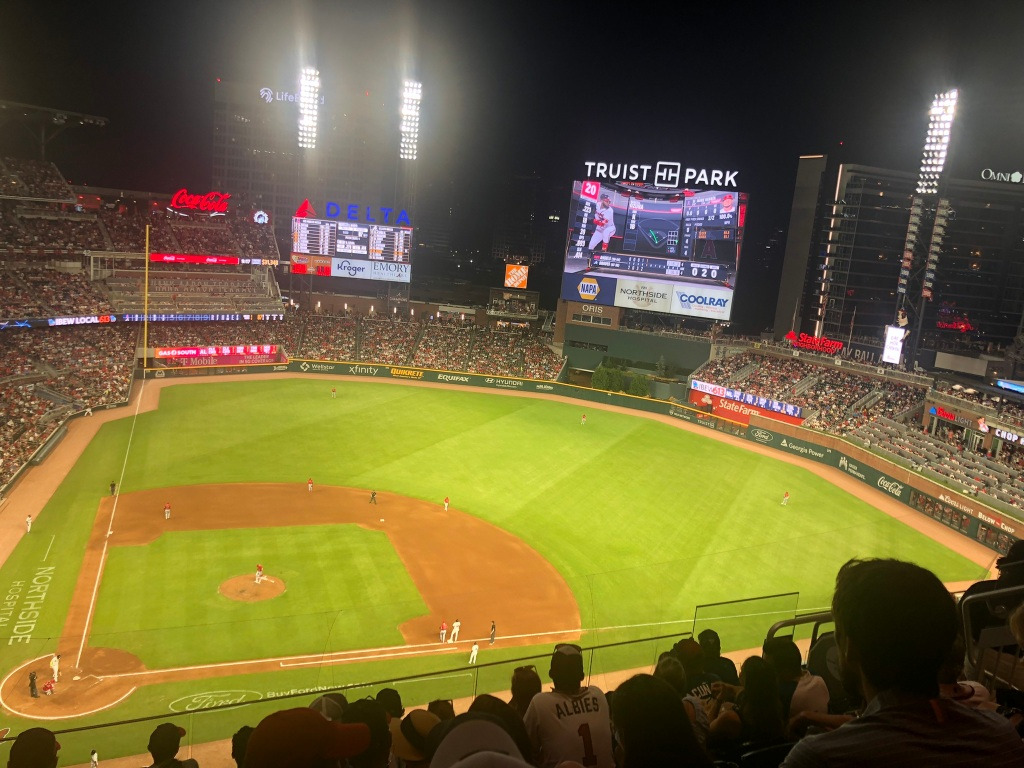 이전의 야구장 방문과 다르게 이 Truist Park 는 열려있는 구장이어서 해가지는 과정과 해가 지고난 후의 풍경이 너무 이뻤다.