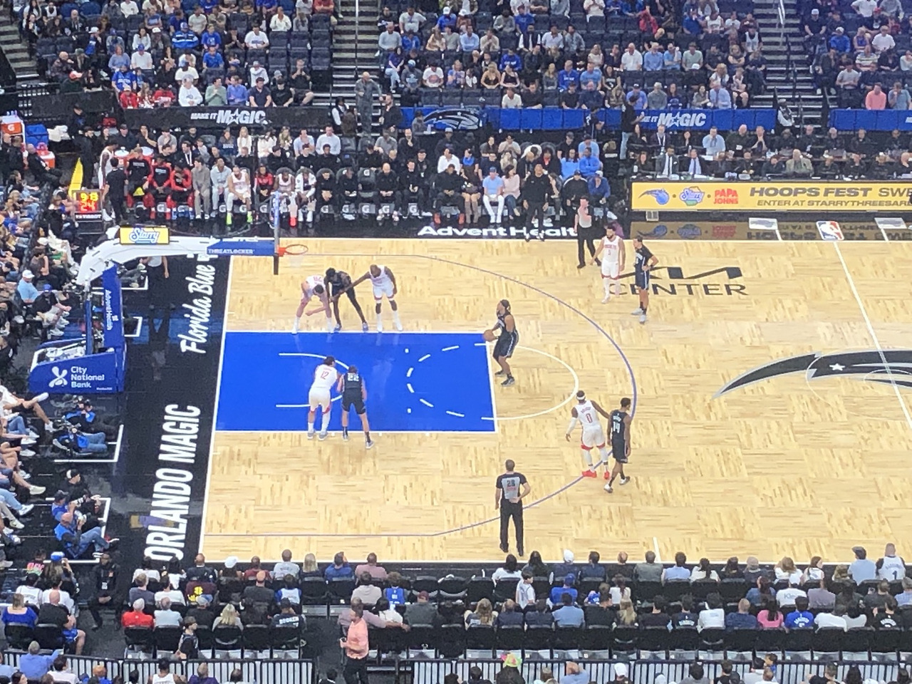 상대는 휴스턴 로케츠 였다. 이 다음 홈 게임이 LA 레이커스와의 게임이었다. 당연히 개념이 있는 사람이라면 돈치치와 르브론을 볼 수 있는 게임을 직관하지 왜 휴스턴 게임을 보고있냐 할 수 있다. 왜냐면 나도 그런 생각을 했으니깐.... 하지만 나에겐 금전적인 개념이란것도 같이 있어버리는 바람에 10배가 넘어가는 티켓값을 도저히 부담 할 순 없었다. 전구장 방문을 인생 목표로 하고있기 때문에 언젠간 돈치치는 볼 수 있을거라 생각한다. 르브론 직관의 절호의 찬스였던건 지금생각해도 아쉽긴 하지만 그냥 정규시즌 경기가 $300이 넘어가기게 쉽게 구매할 수 없었다ㅠㅠ 하지만 올랜도의 미래 파올로 반케로를 볼 수 있었단 것에 만족한다.