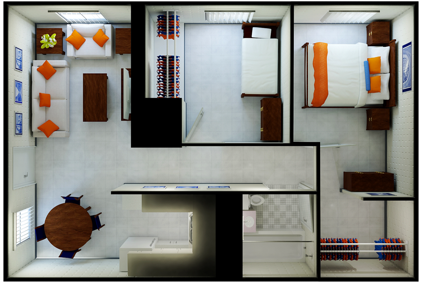 플로리다 대학교 대학원 하우징은 총 세 개의 아파트가 있다.