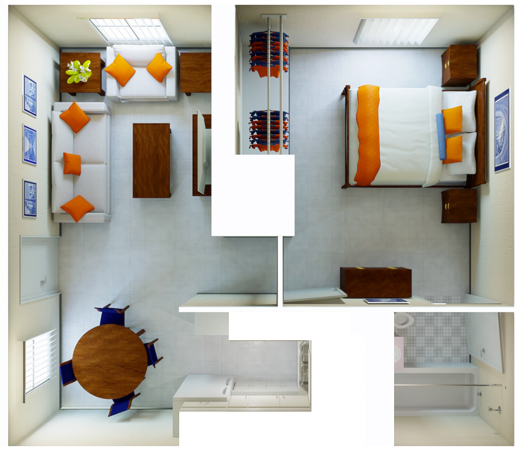 1 bed 아파트는 사실 floor plan을 불평할 부분이 크게 없긴 하다. 거실과 방한칸이 있으니 거기에 좋게 배치하고 말고가 그 차이가 크지 않기 때문이다. 아래 사진은 다이아몬드 아파트 1bed floor plan이다.