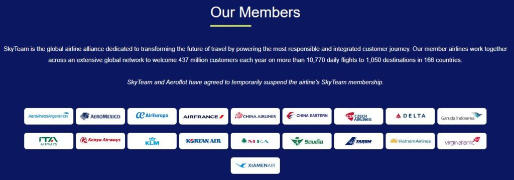 Skyteam (대한항공 있는 곳): AeroMexico, Airfrance KLM, Delta, Virgin Atlantic