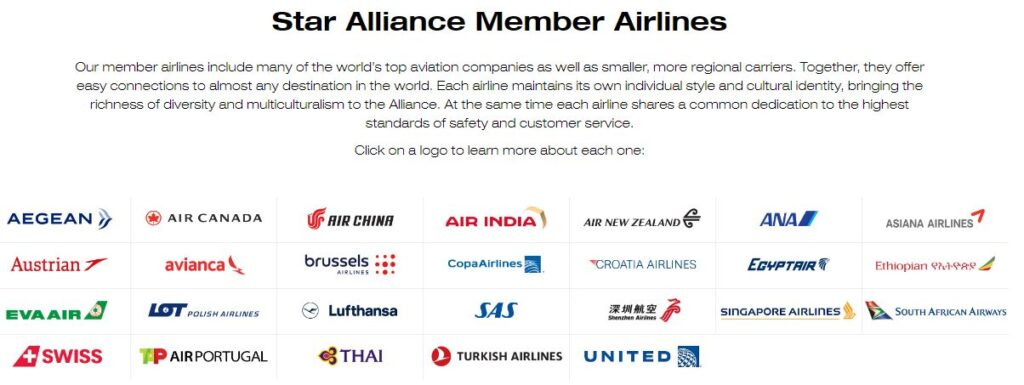 Star Alliance (아시아나 있는 곳): ANA (All Nippon Airways), Avianca, Singapore Airlines