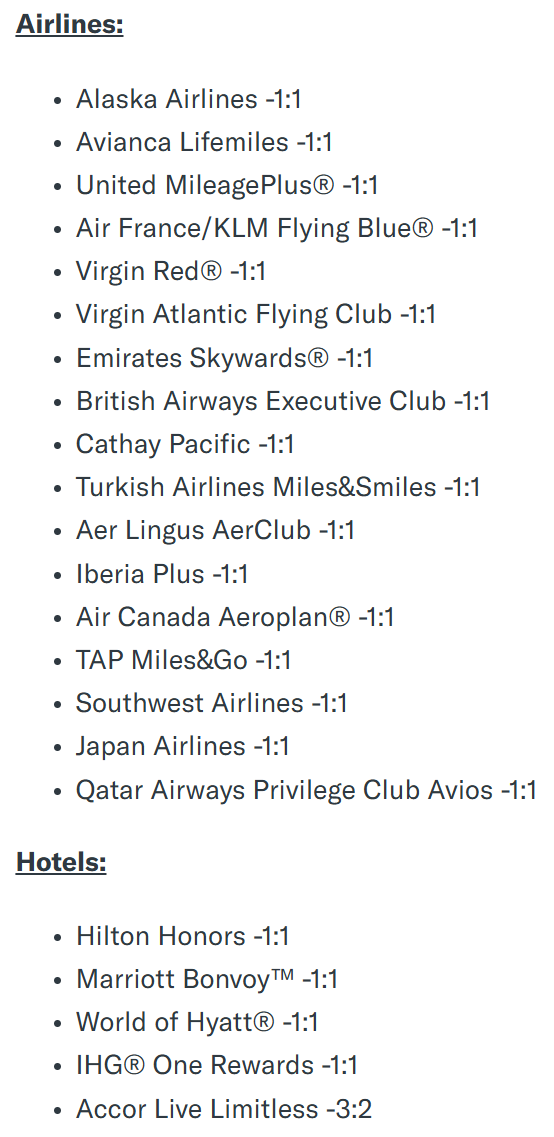 내가 BILT 카드를 좋아하는 이유는 이 BILT 포인트의 활용도 때문이다. 다음은 BILT 포인트를 전환할 수 있는 파트너 사 리스트들이다.